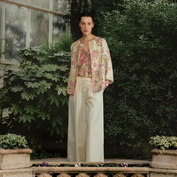 La colección se construye sobre una paleta cromática luminosa y seductora: coral vibrante, verde aqua, turquesa intenso, ocre natural, verde botánico y blanco. Cada tono se combina con estampados exclusivos que crean un diálogo visual lleno de energía: delicados rosados, maxi flores en amarillo radiante, composiciones florales sobre fondos de rayas reinterpretados, paisleys y grafismos de gran formato. Todo pensado para que cada look atraiga la mirada desde la primera impresión.