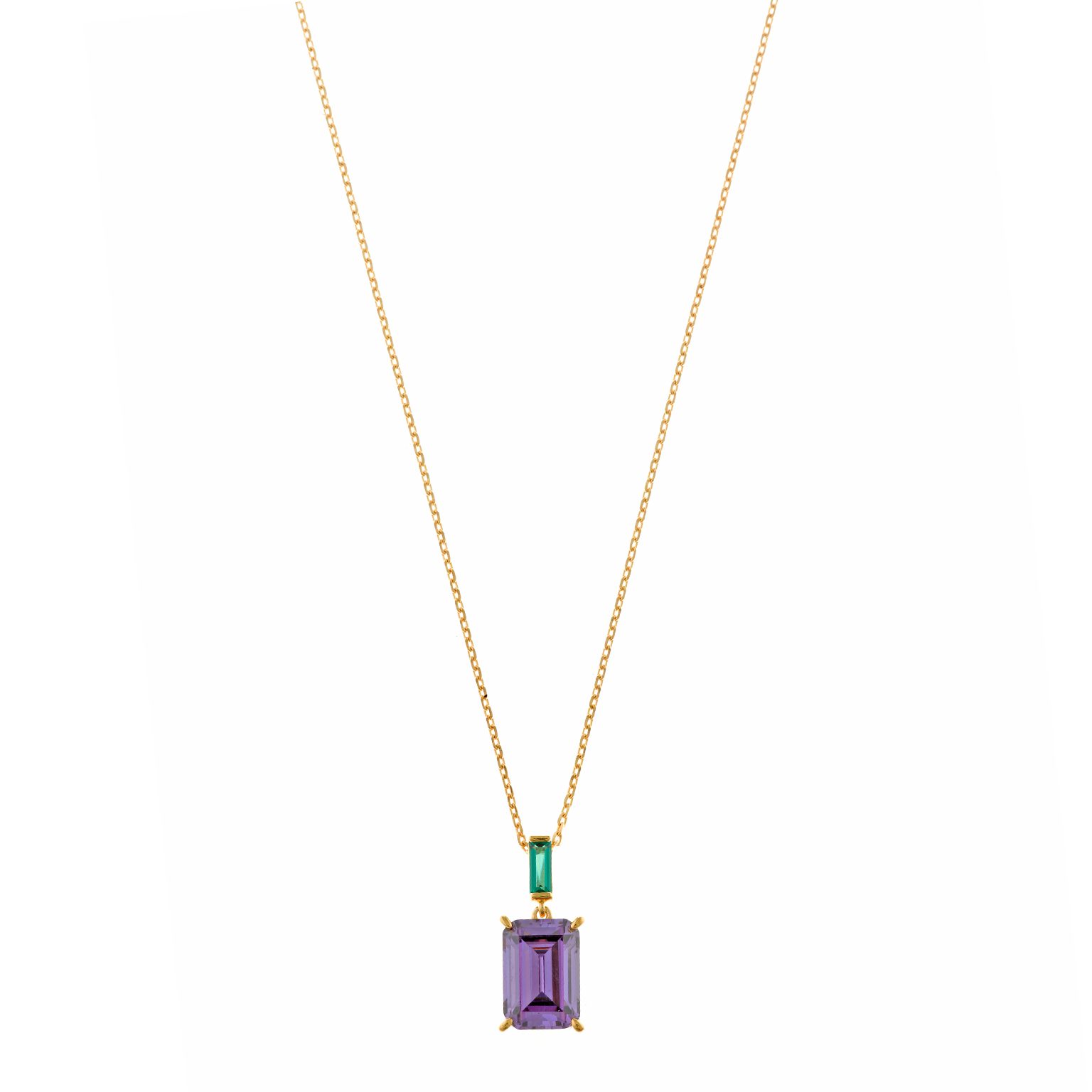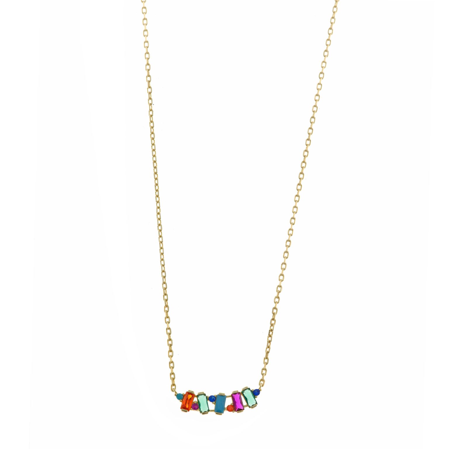 Necklaces with colored stones and white cubic zirconia are a timeless trend. These pieces stand out for their combination of the intense brilliance of white cubic zirconia with the prominence of the center stones in different shades.