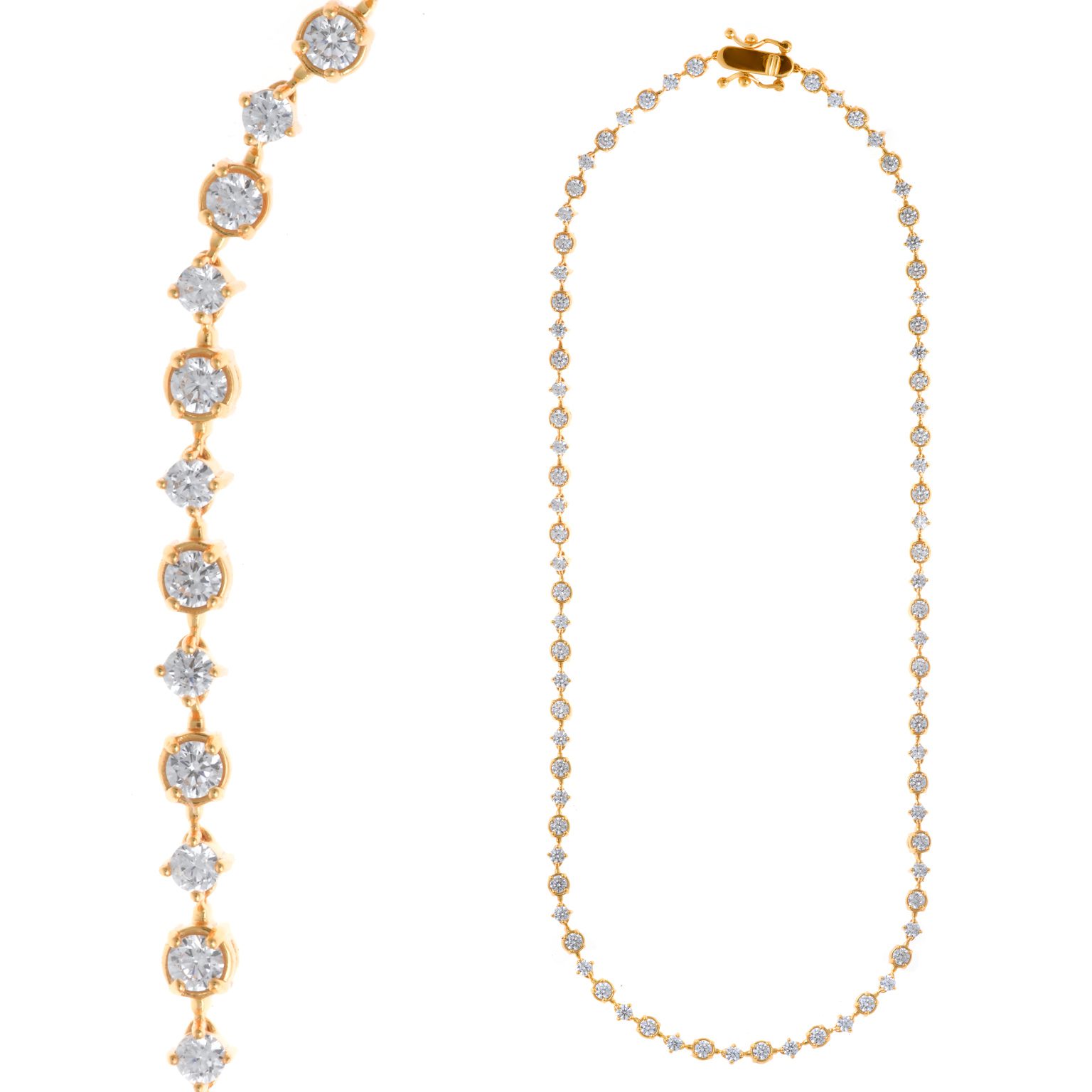 Rhodium and white cubic zirconia are a timeless combination, and in choker form, they achieve a unique level of sophistication. We present two designs where white cubic zirconia stands out with a classic style and exceptional brilliance.