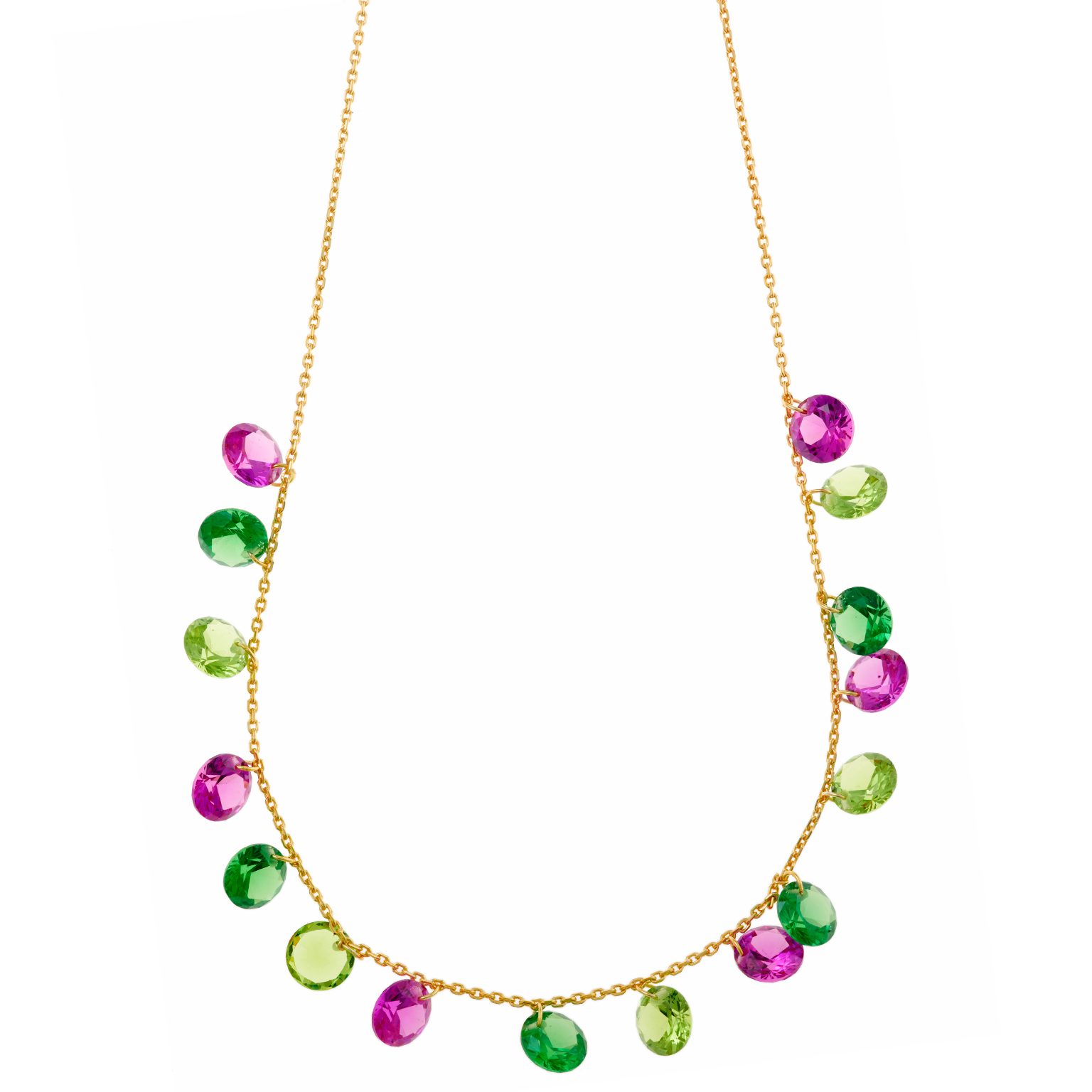 c) Silver necklaces with multi-colored zircons that breathe joy and freshness