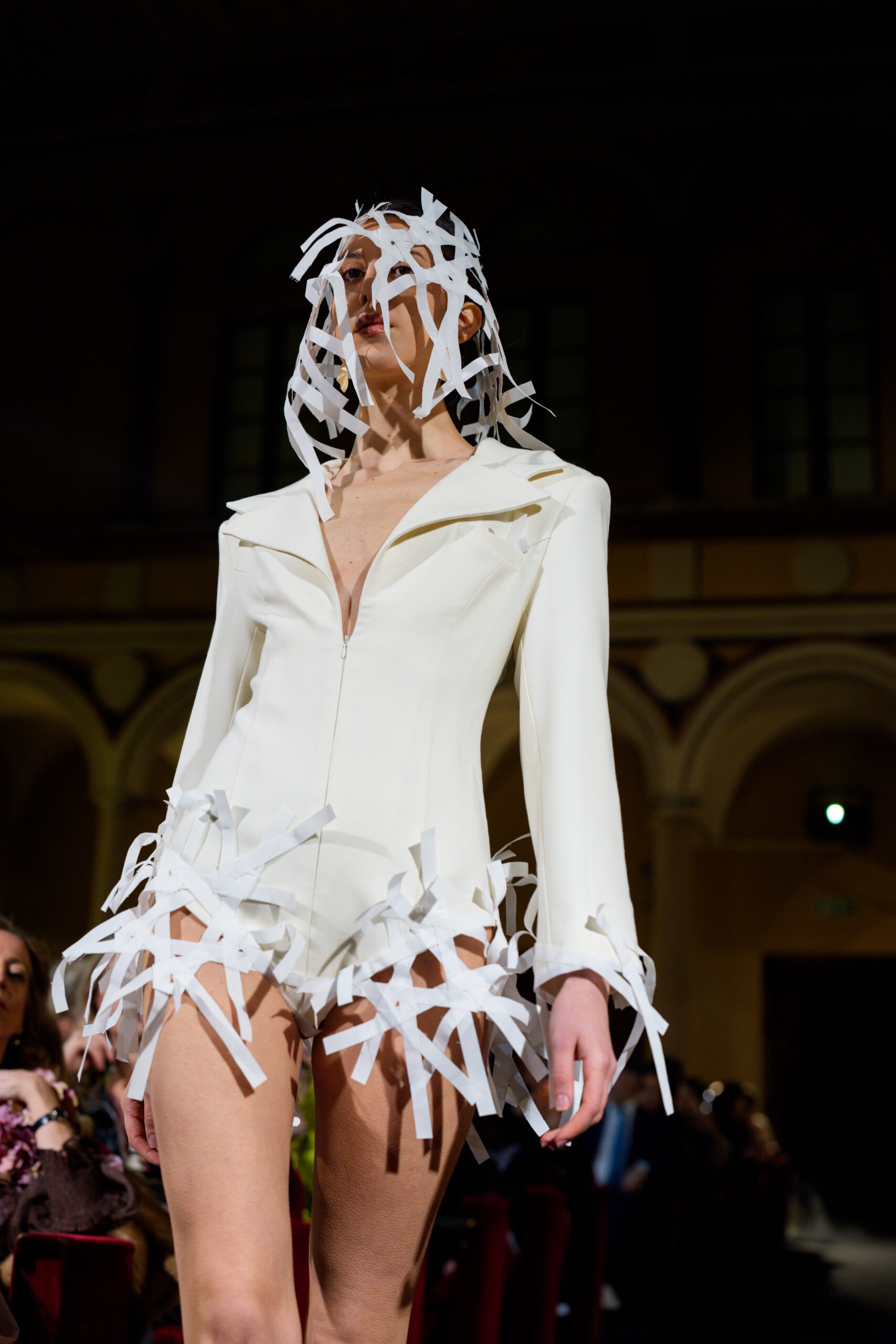 White dresses structured through precise folds, silhouettes that seemed sculpted in air, and a quiet elegance that spoke volumes. ORIGAMI was conceived as a dialogue between fabric, movement and memory.