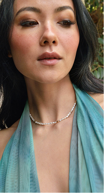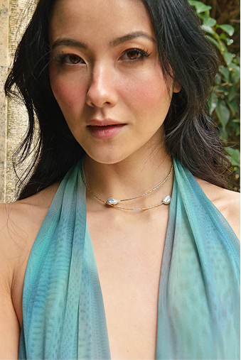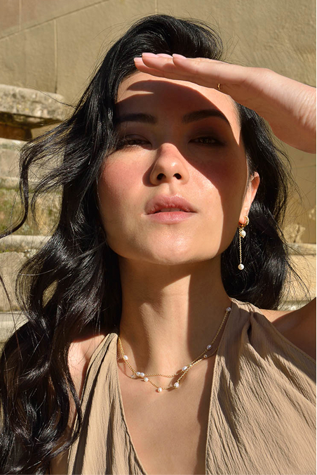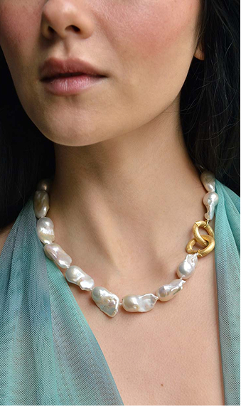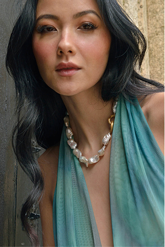 To add volume and modernity to your look, Helénica necklaces combine the beauty of baroque pearls with a cable-style design that gracefully drapes the neckline. Versatile pieces that stand out for their sophisticated, contemporary style.