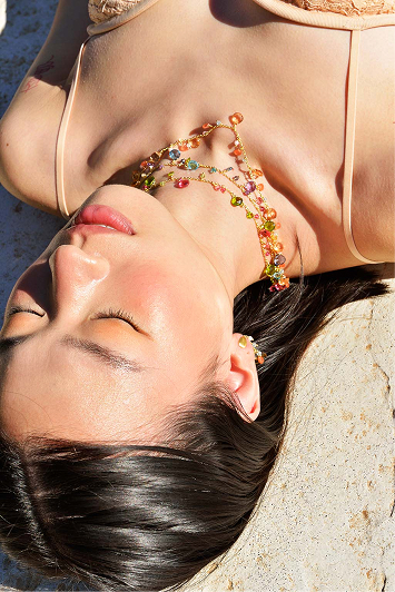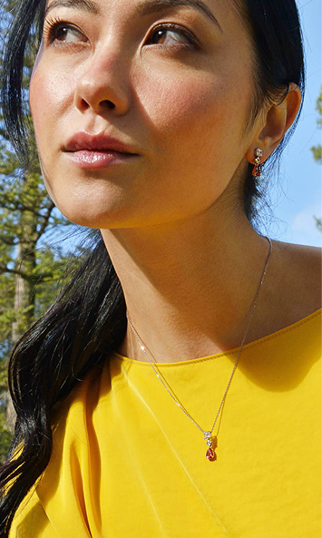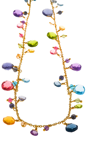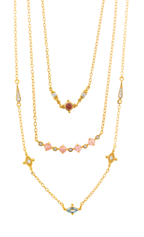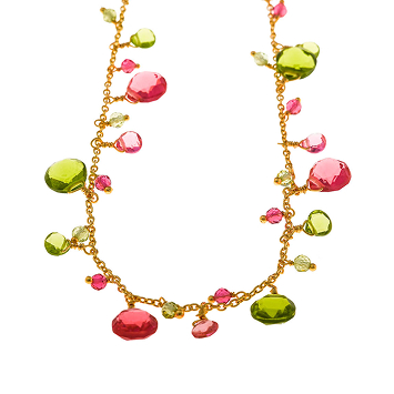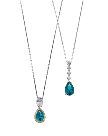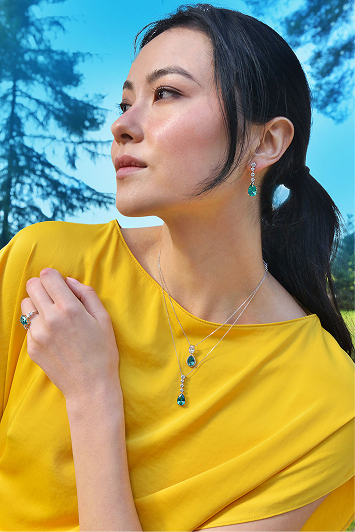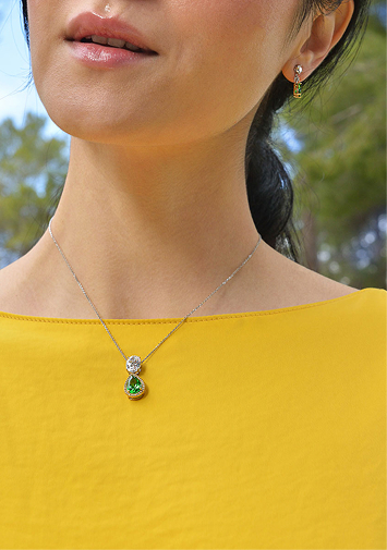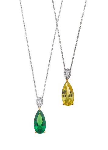 Vibrant necklaces brighten the neckline with colorful cubic zirconias like padparadscha, tsavorite, lemon, and Paraíba blue, adding energy and sophistication to your look.
