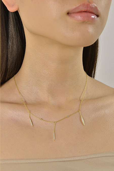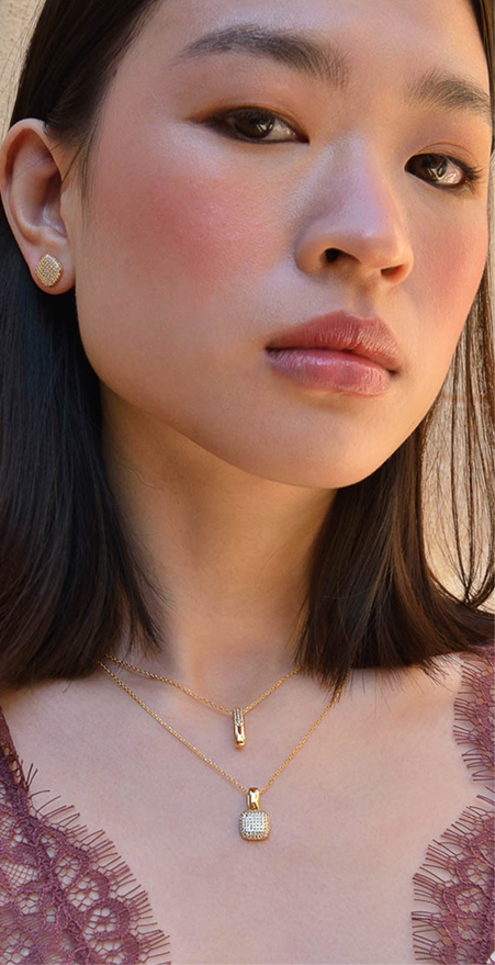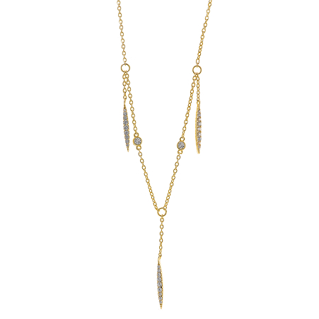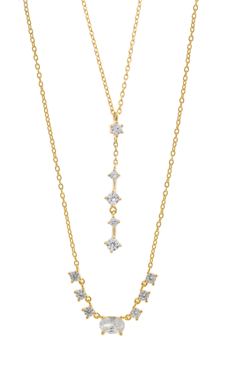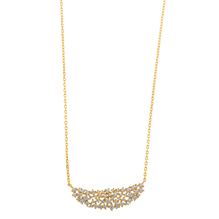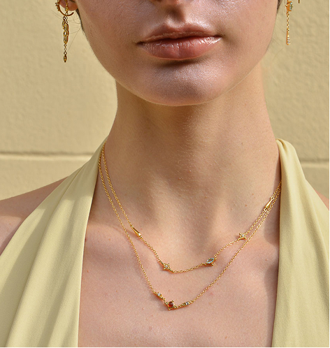Brighten your neckline with the Astral collection. Gold-plated silver necklaces with white cubic zirconias subtly catch the light, adding a sophisticated, modern touch to any outfit.