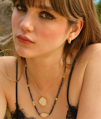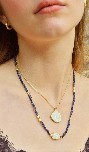 Organic necklaces bring freshness and light to the neckline, perfect for summer, dynamic, and unique looks. Designs that combine natural stones and movement.