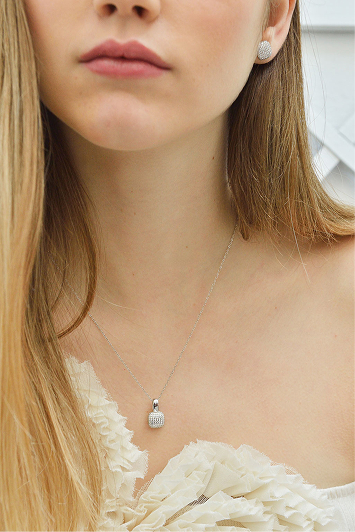 Wedding collection necklaces with white cubic zirconia pavé set in sterling silver are lightweight and delicate, perfect for brides seeking subtle sparkle and sophistication on their big day.