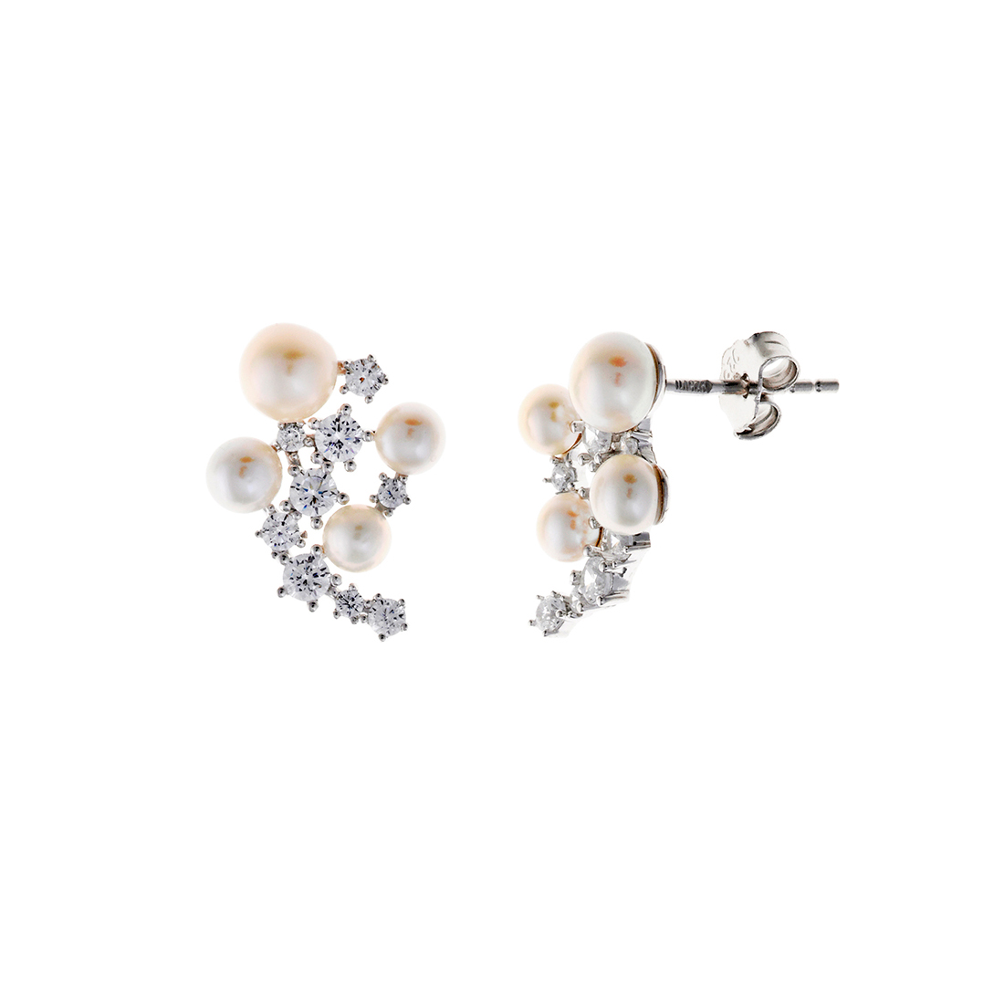 La combinazione di zirconi e perle è un classico della gioielleria da sposa. Gli zirconi donano brillantezza e luce, mentre le perle introducono un tocco più morbido e senza tempo.