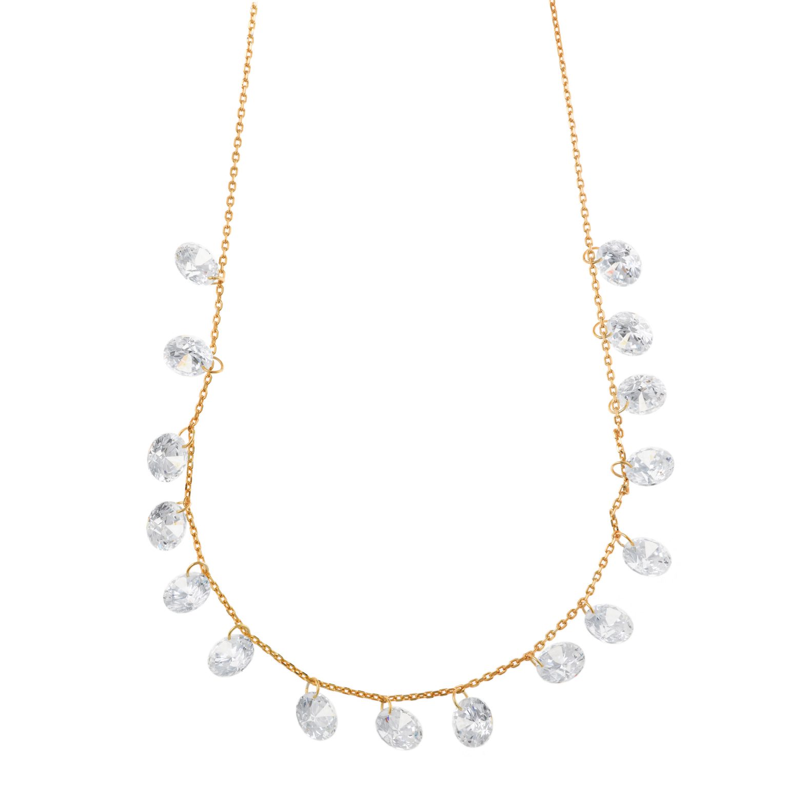 e) Collane in argento placcato oro con zirconi bianchi. Un classico reinventato.