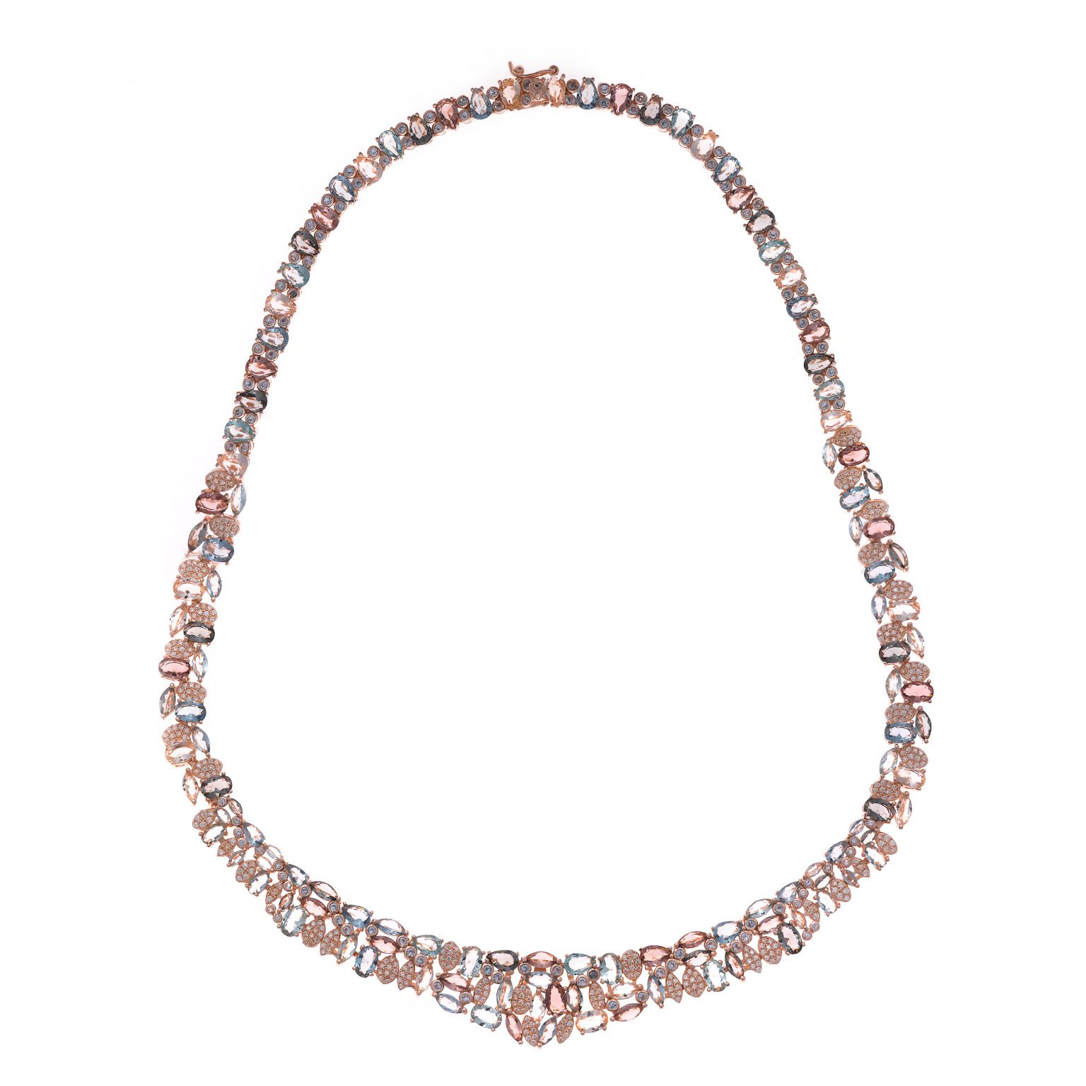 Le collane con pietre colorate e zirconi bianchi sono una tendenza che non passa mai di moda. Questi pezzi si distinguono per l’unione dell’intensa brillantezza degli zirconi bianchi con la prominenza delle pietre centrali in diverse tonalità.
