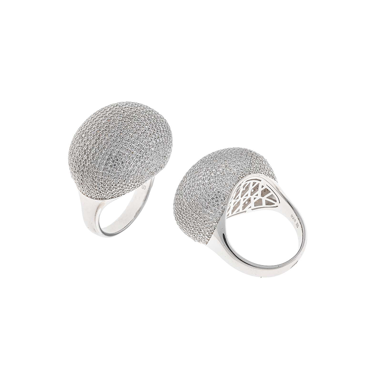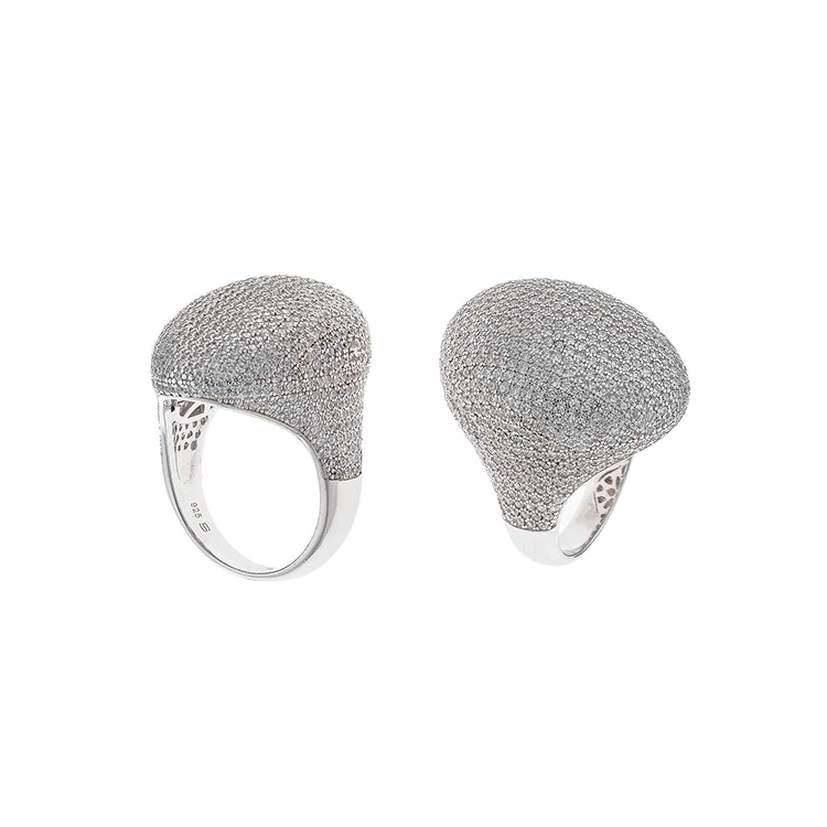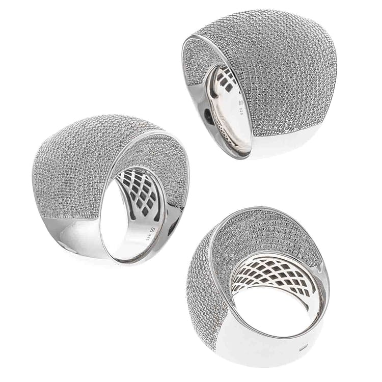 Gli anelli della collezione Altai sono una vera dichiarazione di stile: pezzi di grande volume in argento sterling, ricoperti di micropavé di zirconi che evocano il bagliore ghiacciato della brina. Design pensati per stupire e trasformare qualsiasi look in qualcosa di magnetico.