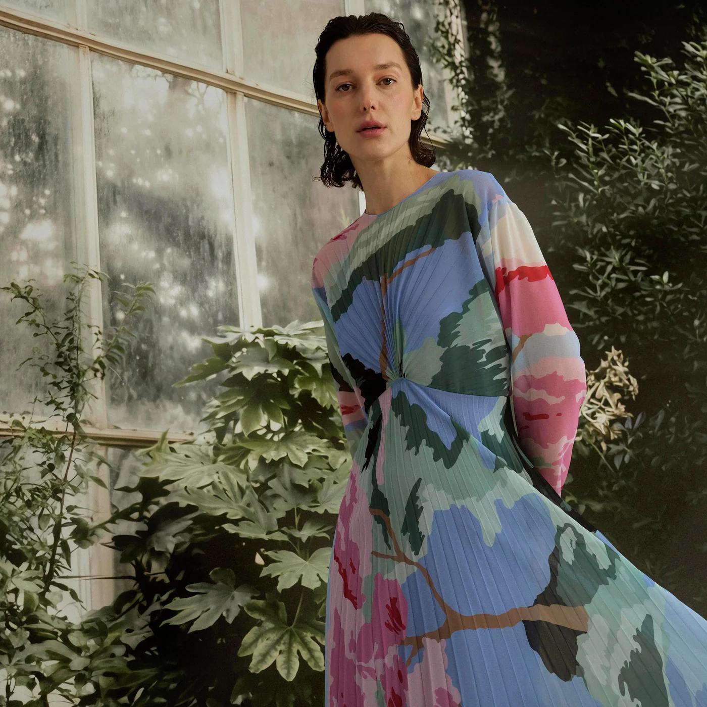 La collezione si sviluppa su una palette cromatica luminosa e seducente: corallo vibrante, verde acqua, turchese intenso, ocra naturale, verde botanico e bianco. Ogni tonalità è combinata con stampe esclusive che creano un dialogo visivo pieno di energia: rosa delicati, maxi fiori giallo brillante, composizioni floreali su sfondi a righe reinterpretati, paisley e grafiche di grande formato. Tutto pensato affinché ogni look catturi lo sguardo al primo impatto.