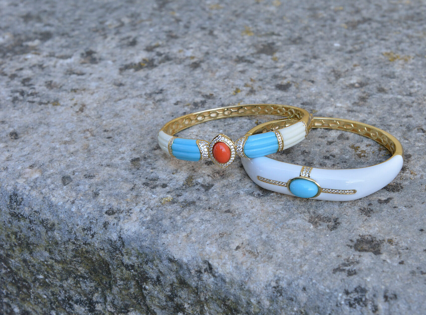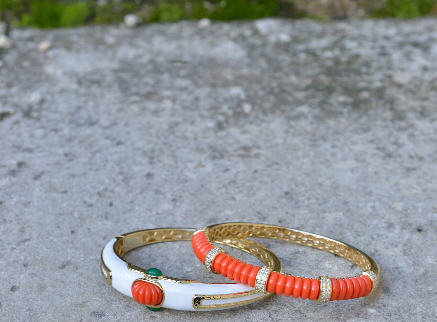 The La linea Organic si distingue per la sua palette vibrante ed energizzante, ricca di tonalità che richiamano frutti esotici e mercati mediterranei: verdi intensi, rosa delicati, blu luminosi e, in particolare, tonalità pesca e arancio, che si integrano naturalmente con le palette calde della collezione Crush. Questi pezzi incorporano pietre naturali e movimenti dinamici, conferendo un tocco di colore vivo e una sofisticazione fresca all’insieme del look.