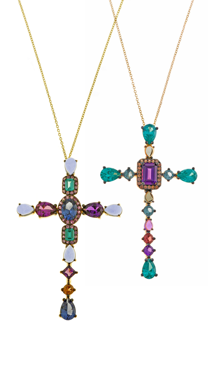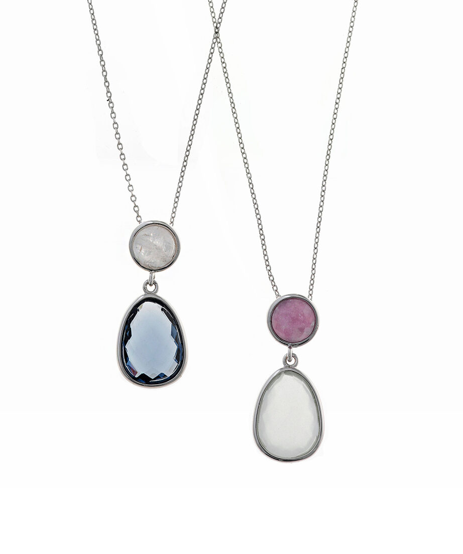 Los collares de Salvatore Plata completan el look con propuestas variadas y llenas de personalidad. ORGANIC destaca por sus piedras naturales de color para lograr un aire natural y relajado. NENUPHAR suma colgantes lágrima facetados en colores vivos y elegantes, que capturan la luz con sutileza. BLINK propone collares tipo tenis con piedras de color uniforme y brillo sofisticado. VIBRANT ofrece colgantes con piedras facetadas en formas de gota y colores intensos para un look luminoso y vibrante, mientras GENUINE se centra en diseños con cruces engastadas con piedras de color, añadiendo un toque contemporáneo y atrevido. Diseños pensados para combinar con pendientes grandes de colores y crear conjuntos únicos.
