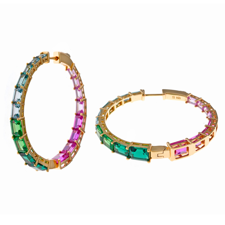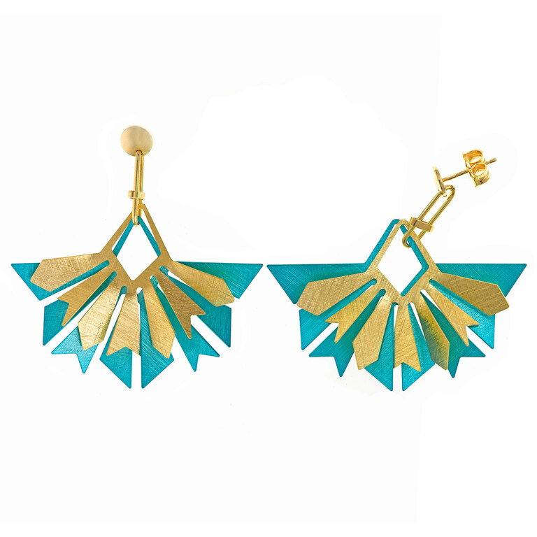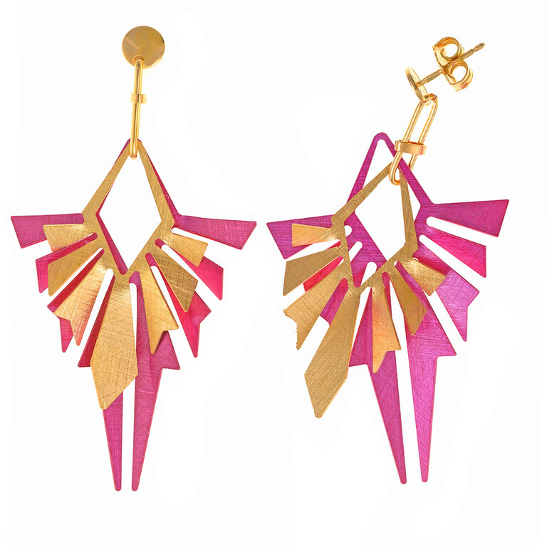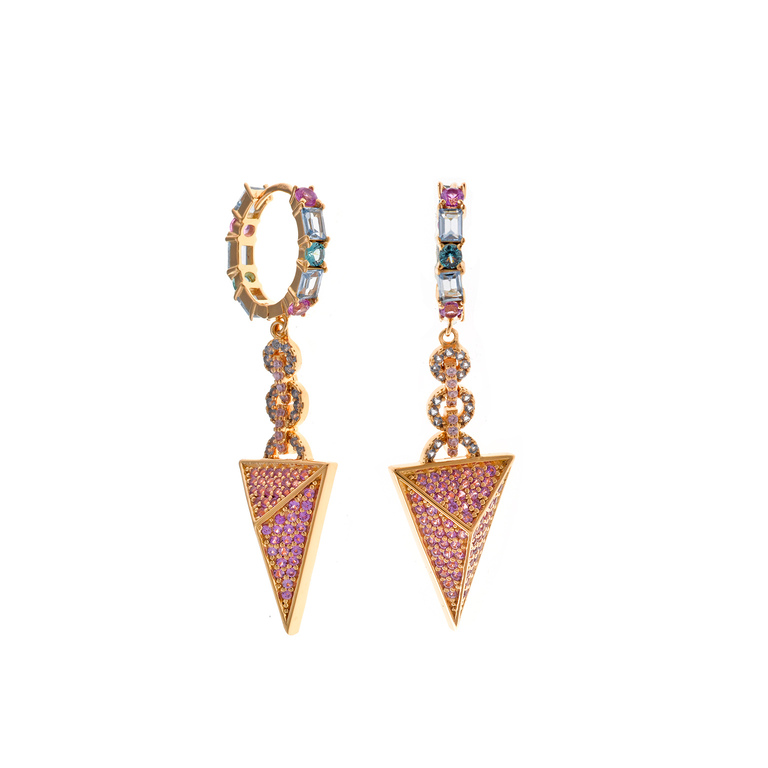 Estos pendientes de plata convierten el color en arte gracias a sus formas arquitectónicas y detalles en mate. Son perfectos para quienes aprecian el diseño contemporáneo y quieren un aire sofisticado sin renunciar al protagonismo.